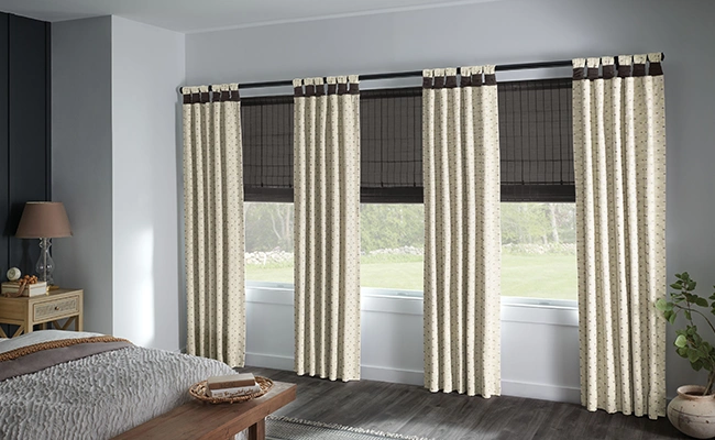 If you want a one-of-a-kind look that will serve as an impressive design element in your home, consider layering your window treatments with elegant custom drapes.